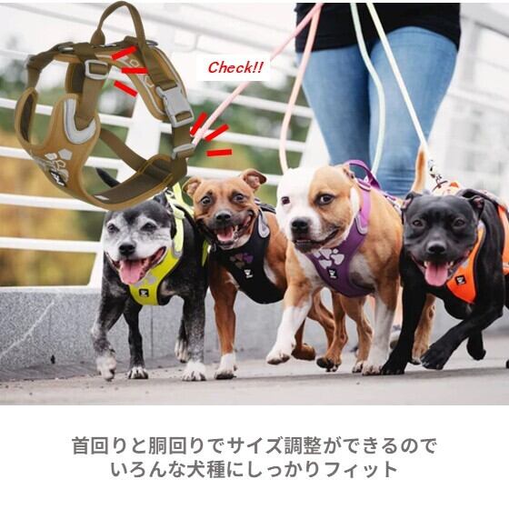 広いパッドが愛犬を優しく包んでくれるベストセラーモデル【ウォーリアハーネス】。