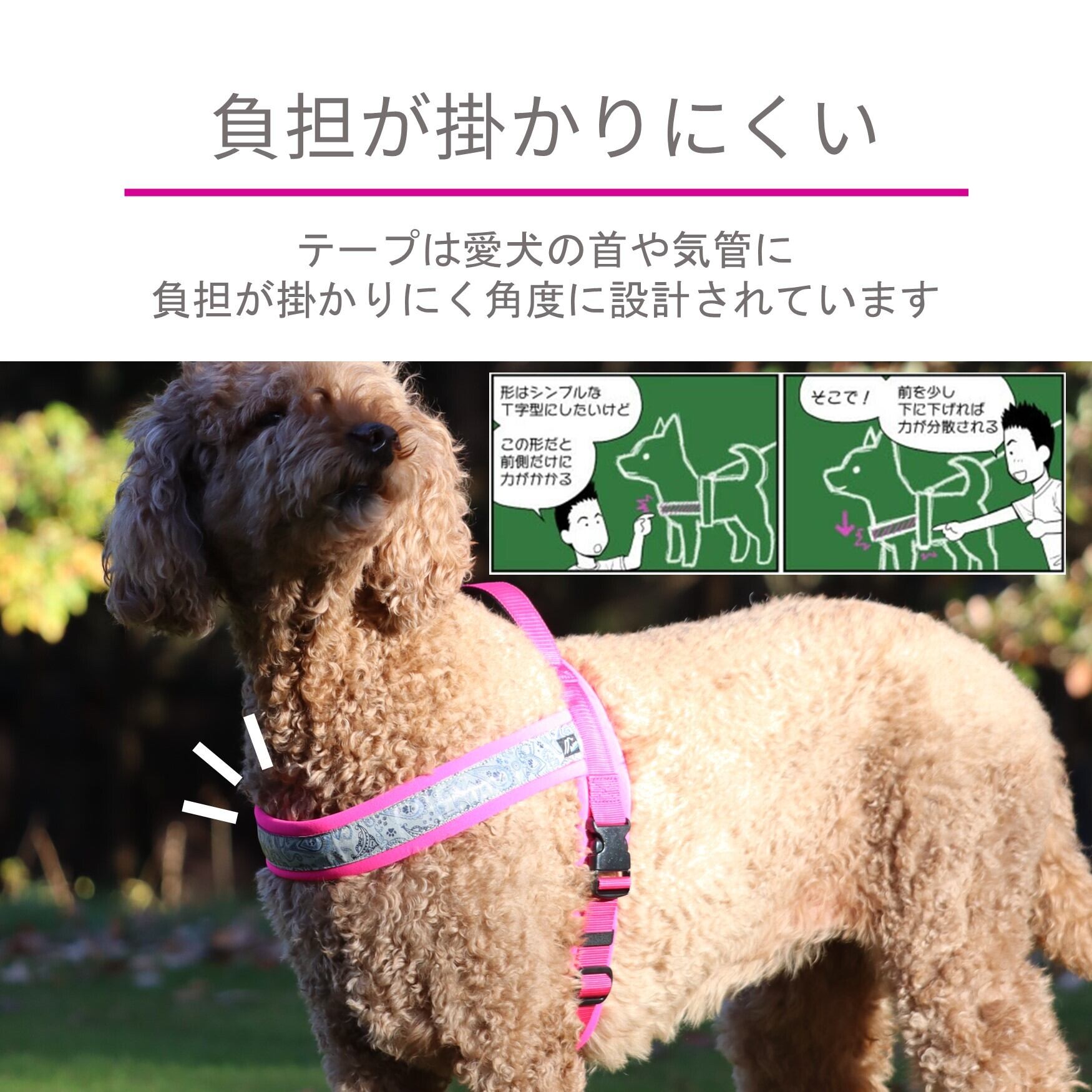 辰年にリニューアル。着脱しやすく擦れにくい愛犬に優しいハーネス。