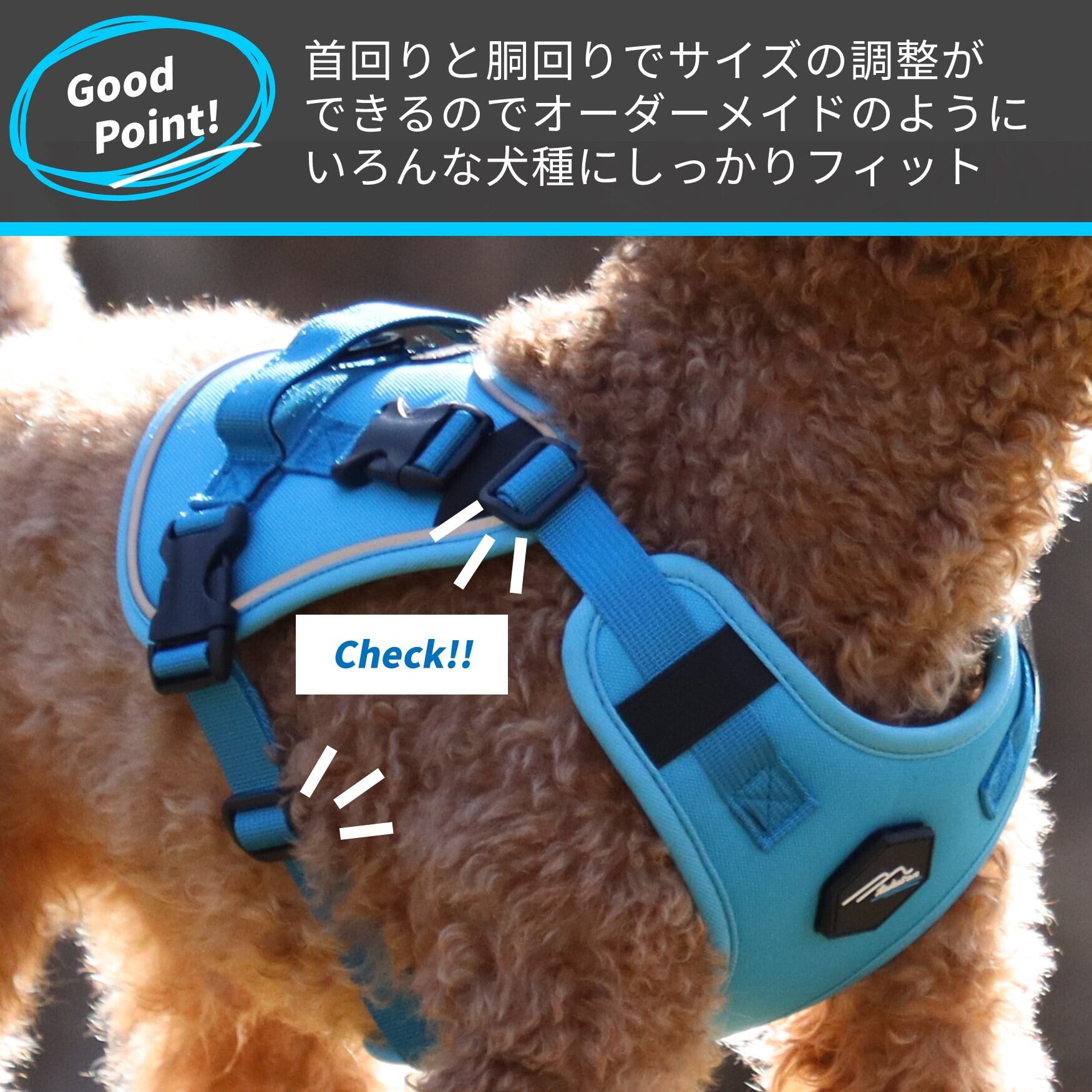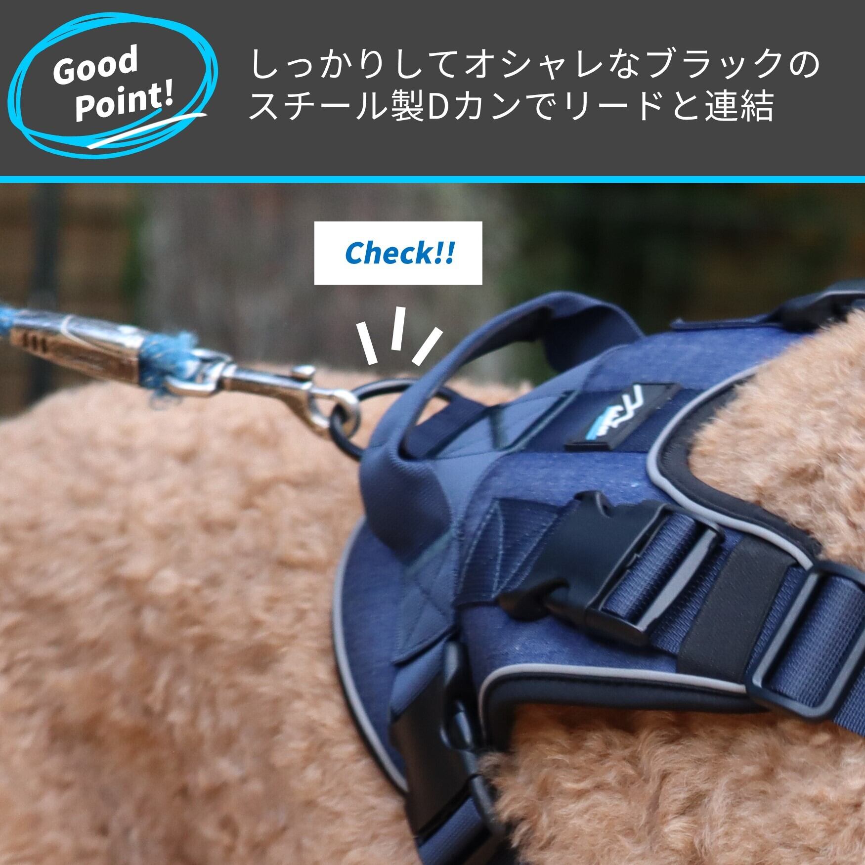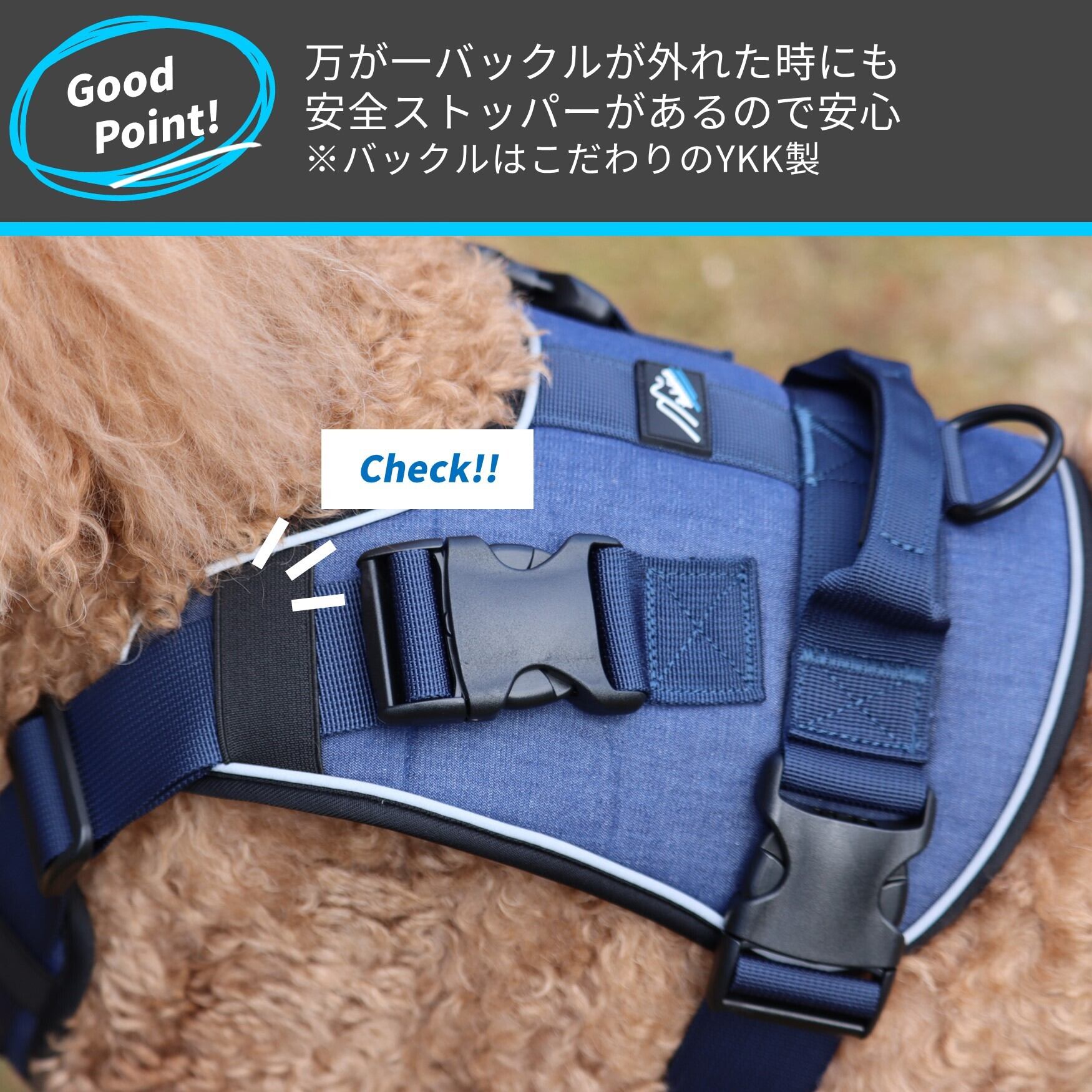 大きなパッドが愛犬の体全体をしっかり優しく包み込むハーネス。