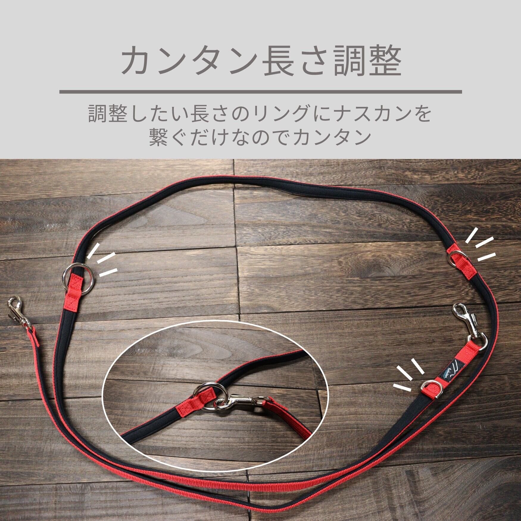 3段階に長さ調整できるリード。ショルダーとしてもお使い頂けます。