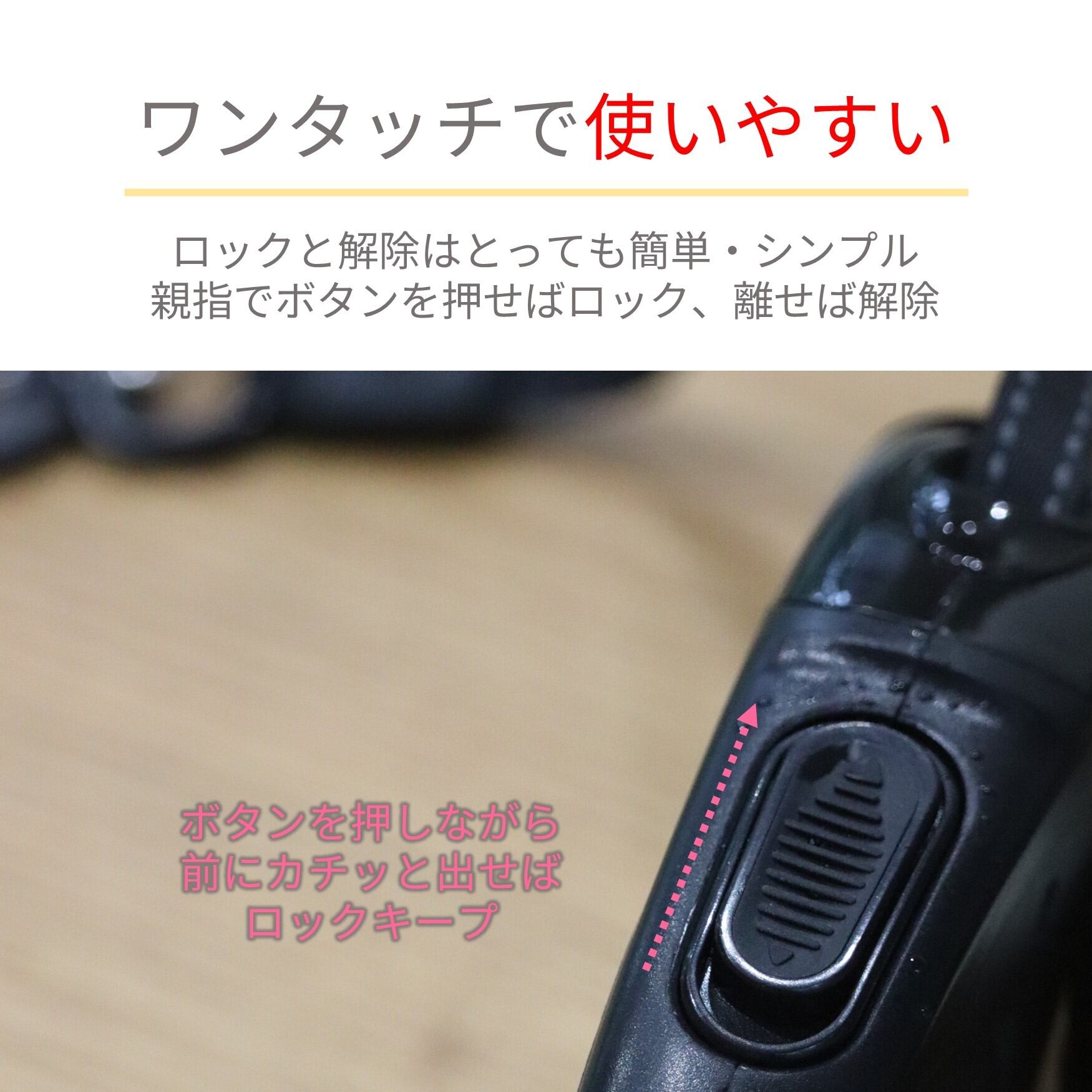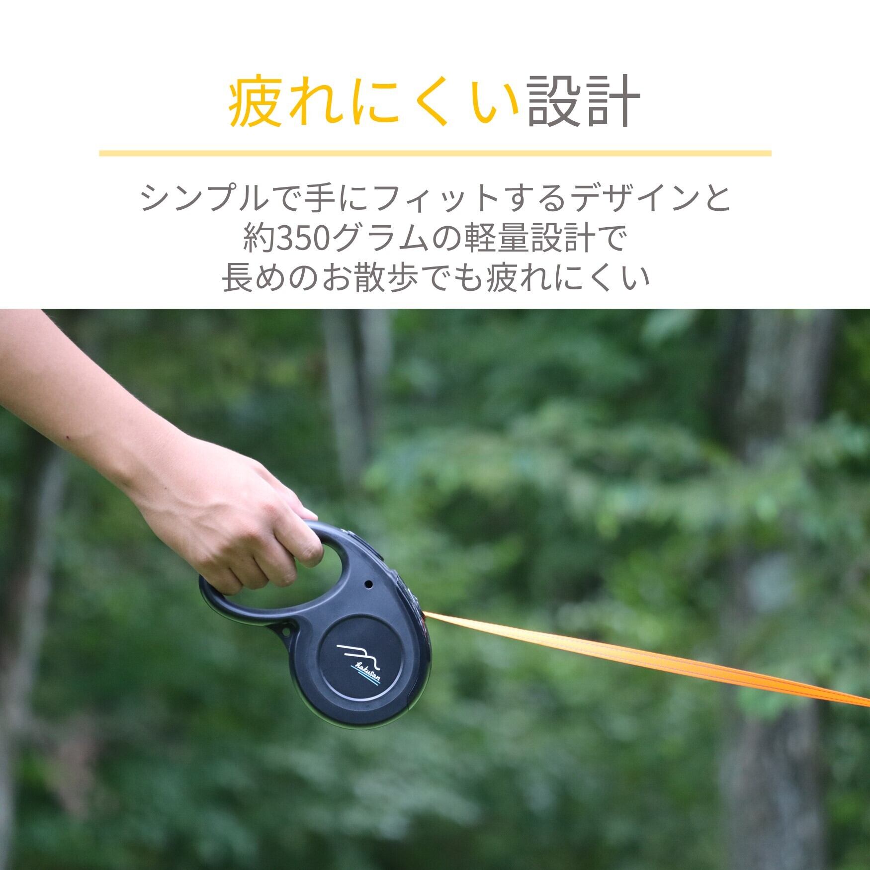先端がカラビナなのでより外れにくく安心な伸縮リード。