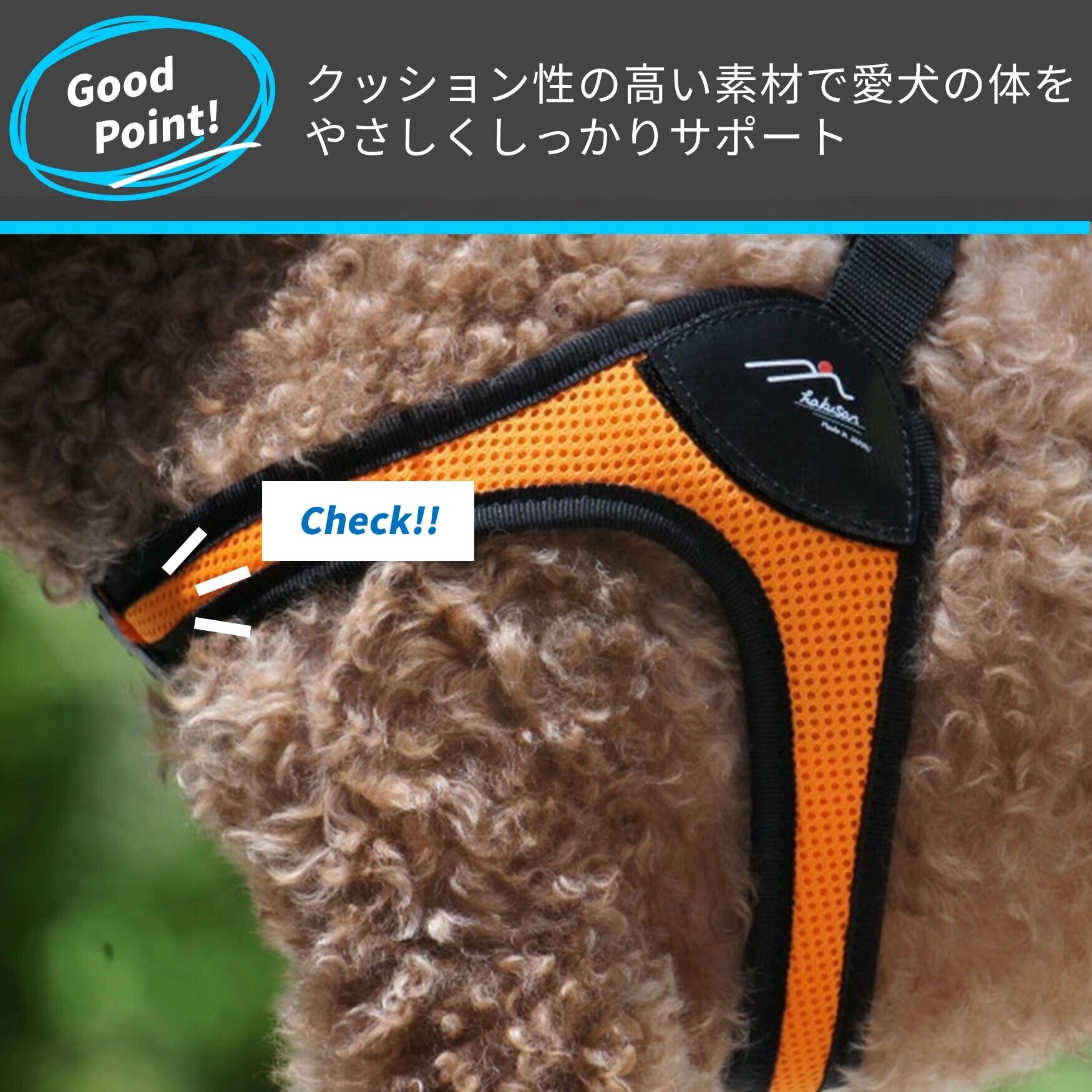 日本製のメッシュ生地を贅沢に重ねてたフカフカクッション。使いやすいシンプルハーネス。