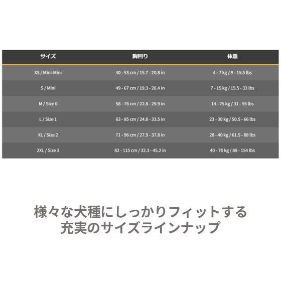 →ハーネスサイズ【Baby1/3XS・Baby2/2XS・Mini-Mini/XS・Mini/S・サイズ 0/M 】対応